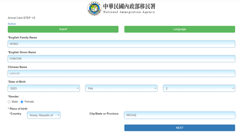 대만은 현재 온라인으로 입국신고서를 사전 작성하는 시스템을 제공하지 않습니다. 따라서 공항 도착 후 또는 비행기에서 제공받은 서류를 통해 직접 작성해야 합니다.