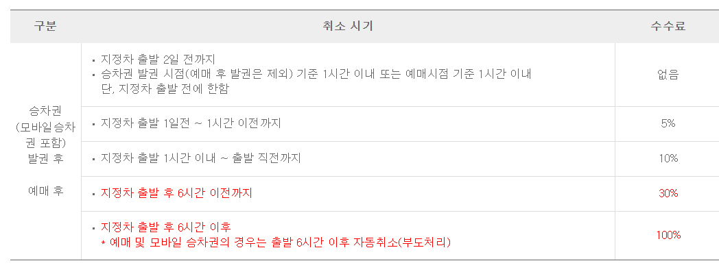 보통 지정차 출발 2일 전까지는 수수료가 없으니 취소나 변경을 잘 생각하고 버스를 타기 이틀 전까지 취소하셔야 합니다.